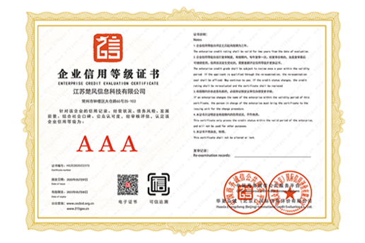 AAA企业信用等级证书
