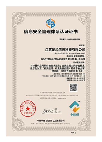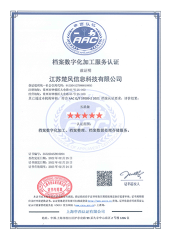 - 档案数字化加工服务 认证 五星级