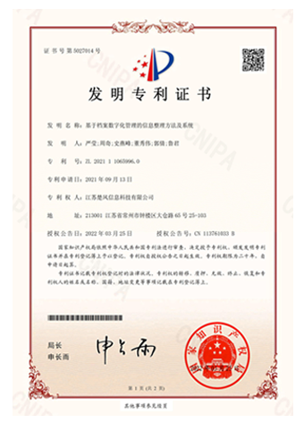 档案数字化管理的信息整理方法及系统-发明专利证书